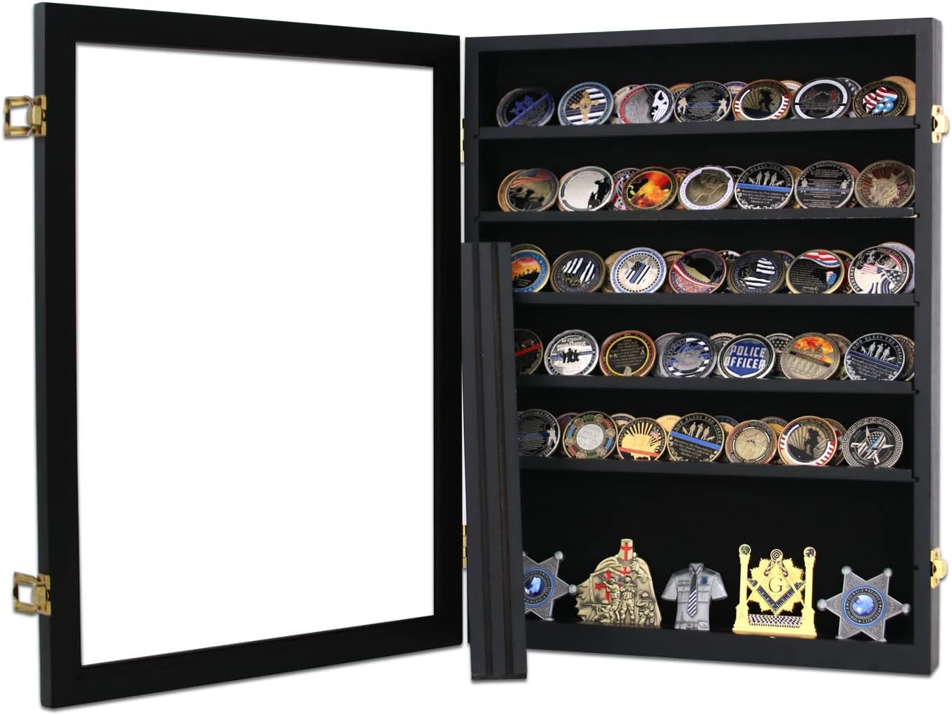 I am DecoWoodo and welcome to my page. I am committed to showing all kind of cherished/ honorable moments. This ASIN contains 3 firefighters challenge coins and 1 military challenge coin display case glass door black finish 7 rows. 343 - the bravery and the selflessness that represents what is best about our nation. We shall never forget these 343 Firefighters. They are the true heroes. Great gifts for the firemen who serve to the fire department. 7 shelves challenge coin display case cabinet can show your army, navy, marine corps, air force, military, police, firefighter coins, casino chips and medals. Wall brackets on the back of the military coin holder display. You can mount it on the wall or display on the table and a glass/acrylic door to protect your military coins, award medals and collections. This Challenge coin stand holder rack can display between 84 to 98 coins depending on your coin sizes. Perfect Gift for Army Birthday, Veterans Day, Christmas and Retired Military. Space between two shelves is 2” and the challenge coin stand shelves can be removable, you can put one shelf away to display your larger collections