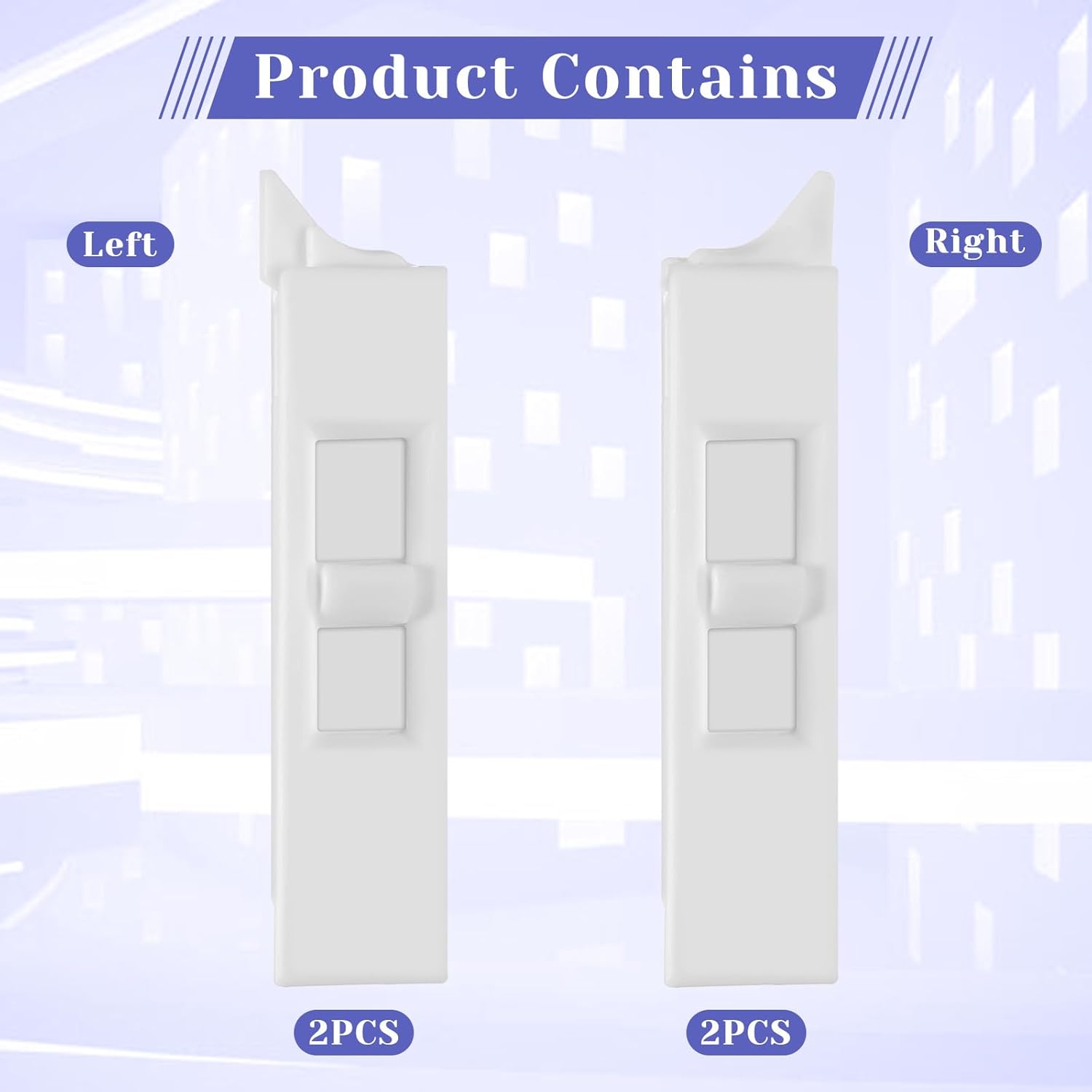 Quality ServiceYour satisfaction is our greatest concernSpecificationProduct name: window tilt latch replacementMaterial: plasticColor: whiteProduct size: see picturePacking method: bag packingPacking size: 15×10×1.4cmPacking List4 pcs window tilt latch replacements