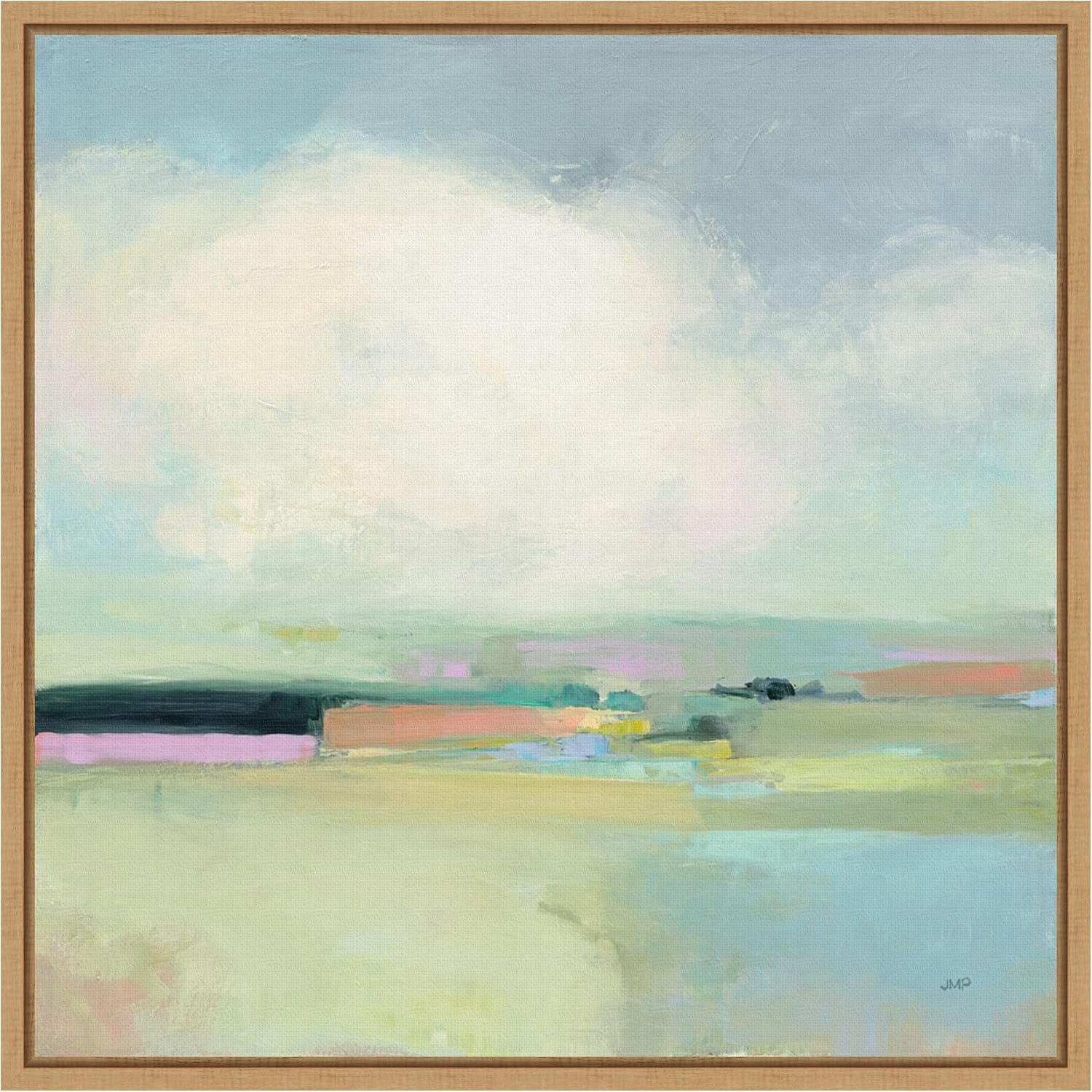 CANVAS ART DETAILS: Colorful Landscape by Julia Purinton. ARTIST BIO: Julia Purinton works in oils, acrylics, Venetian plaster, and glaze. Her artwork has the luminous glow and vintage romance of images by artists who influence her. Many layers of glaze create the atmospheric moods of her landscapes. DESCRIPTION: FRAME: Sylvie Maple. OUTER SIZE: 30 in. W x 30 in. H. The Sylvie Maple frame features a modern, float frame with natural maple woodgrain coloring and dramatic depth. This Amanti Art canvas art print was created by Julia Purinton and printed by Amanti Art in Waunakee WI. The canvas is stretched by hand and finished with a float frame. Individually made using traditional custom framing techniques, it has the quality you would expect from your local frame shop. Because of our attention to detail and focus on artistry, architects, interior designers, and homeowners alike choose this framed canvas artwork to create beautiful living spaces.