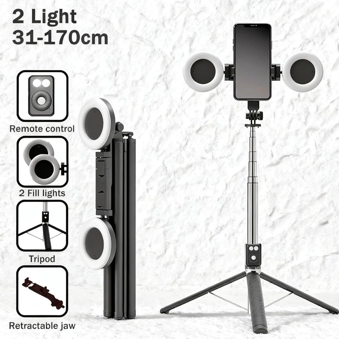 Shine anywhere with the 6-in-1 Selfie Stick Tripod with Light. Built-in LED fill lights with 3 color modes keep you looking great on TikTok, YouTube, Instagram, or Zoom. Use it as a handheld selfie stick or extend it into a 67-inch tripod for group shots, vlogs, and live streams. The Bluetooth remote makes hands-free recording easy, while the USB rechargeable design is perfect for travel. Compatible with most iPhone and Android phones, it’s your all-in-one tool for content creation.
