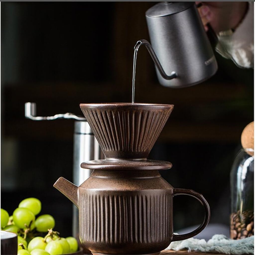 You can make a delicious cup of coffee at home.Beautiful appearance design, comfortable grip.The bottom of the pot is smooth and firm.The water flow is stable and easy to control.Find a comfortable time for yourself in a busy living environment.Material: potteryProcess: High temperature firingCaliber: approximately 8.5cm, height: approximately 11.2cm, capacity: approximately 520mL, filter cupDiameter: 10.8cm Height: 8.4cm Park Coffee cupCaliber: about 7cm, height: about 3.8cm, capacity: about 60mLPackage includes :1* Coffee pot (no other display items)Note:1. Due to manual measurement, please allow an error of 1-3 cm.2. The actual color may be slightly different from the picture due to differences in computer screens and monitors. Thank you for your understanding!Multi-Purpose- Add touch to your kitchen with this design. More than a coffee maker. Many uses including frothing milk for lattes, hot chocolate and brewing tea. Even use it to warm honey, melt butter and coconut oil or make sauces!