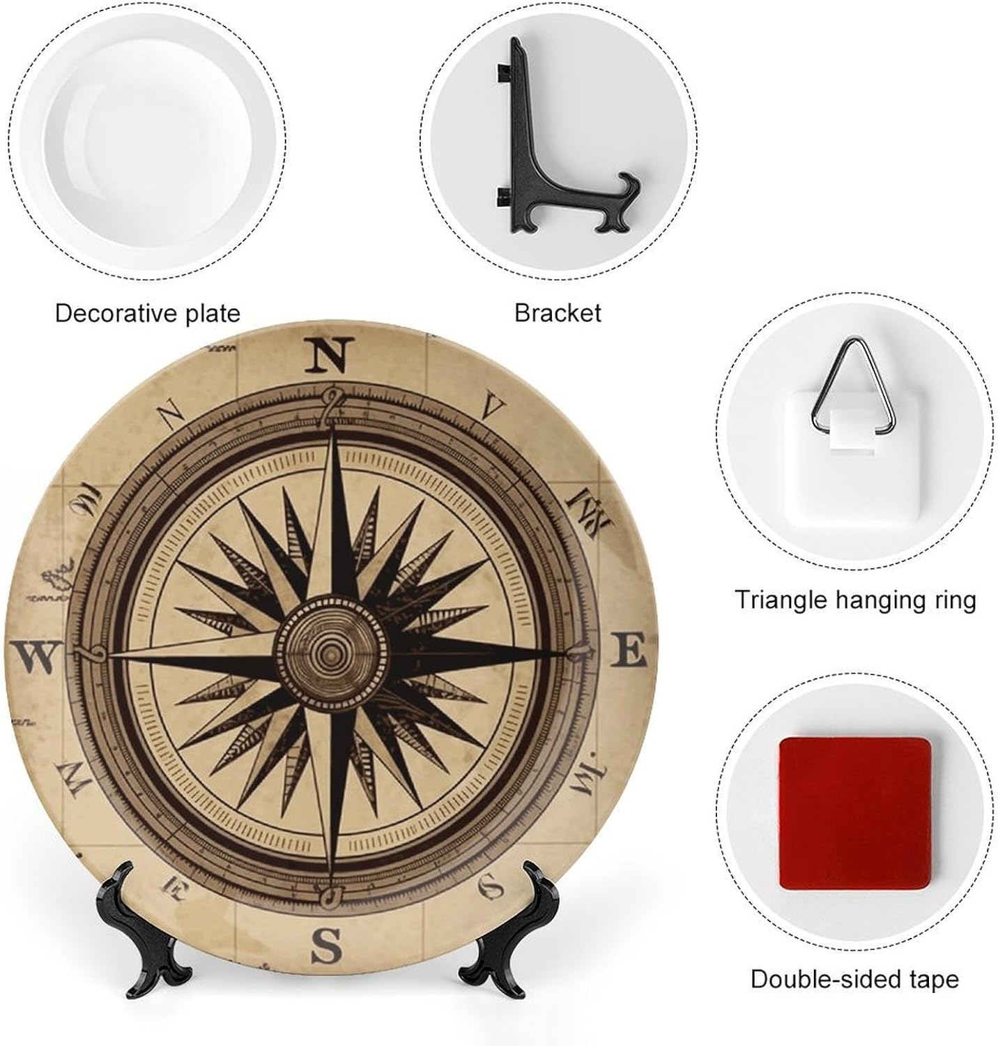 Our versatile ceramic Compass Wind Road Map plates are made of smooth ceramic material. The lightweight bone china plates can be easily placed anywhere you like, showcasing their decorative charm.This bone china dessert plate is available in four sizes: 6 inches, 7 inches, 8 inches, and 10 inches, making it an ideal choice for display items.Personalized decorative plates, perfect for displaying handicrafts, are an ideal choice for home décor. This vertical ceramic plate makes a wonderful gift for housewarmings, anniversaries, weddings, birthdays, Thanksgiving, New Year's, or any holiday.This French country-style ceramic plate is suitable for decorating or using in living rooms, offices, hallways, dining rooms, entrances, hotels, holiday homes, and other places.