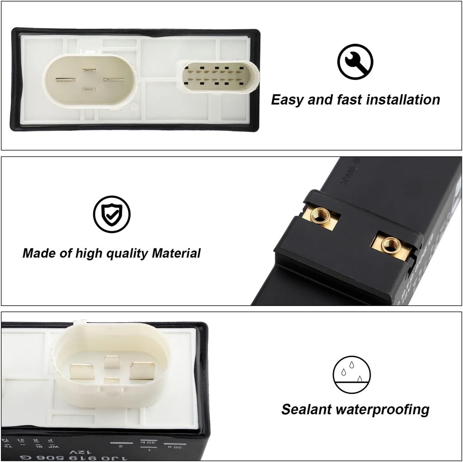 ==========Hign-concerned : NoneItem Weight : 0.26kgItem Height : 7cmItem Width : 9cmItem Length : 14cmPart Number : YC102440NO. : 1J0919506G,1J0 919 506Gfeature 1 : Radiator Fan Control Module,feature 2 : Engine Cooling Fan Controller Resistor,feature 3 : Cooling Fan Motor Modulefeature 4 : Fit For Golf Fit For Jetta