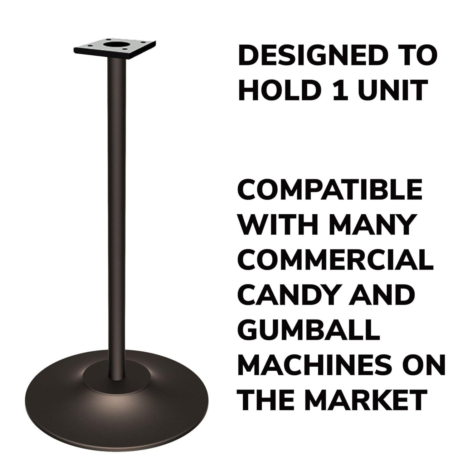 Specification:Color: BlackMaterial: Cast Iron Stand Height: 28”Base Diameter: 16”Pole Diameter: 2”Net weight 16.5 lbs(VENDING MACHINE NOT INCLUDED)This Metal stand is a fabulous unit that can hold up to 1-3 machines (connecting board not included), best of all this unit can Fit most Gumball machines within the vending industry. Stand has been laid with a Black coat which gives it a glossy finish. Great reliable stand that can hold up to its value long-term. Wonderful for Big/Small locations.