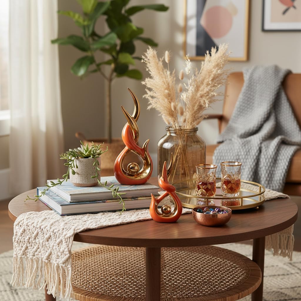 Modern Light Luxury Ceramic Decor Set (2-Piece) | Dynamic Flame Streamline Design – Elevate Your Home’s Elegance When artistic streamlined silhouettes meet light-luxury white porcelain with gold accents, this ceramic sculpture set becomes the “atmosphere highlight” of your home space. Centered on the dynamic flame/water flow curve design, its winding, graceful contours paired with a glossy gold coating create a sophisticated tension against the smooth, luminous white porcelain base. Every curve hides exquisite design ingenuity, making it inherently eye-catching. Staggered 2-Piece Set: Elevate Layered Aesthetics This set includes two pieces of different heights (staggered size design). No extra matching is needed—placing them together instantly adds spatial layering. They also fit perfectly in different corners when displayed separately: the taller piece can serve as a visual focal point, while the shorter one works as a complementary accent, easily filling empty spots on TV stands, entryway cabinets, etc