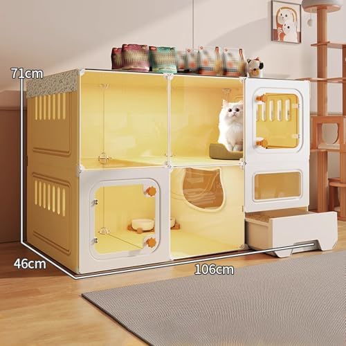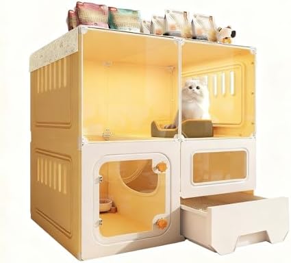 Give your cat a peaceful and secure space that feels like home with our transparent cat enclosure, designed for discerning cat owners. This stylish and functional habitat seamlessly integrates into any modern living area, catering to your cat's natural instincts. Whether your feline friend enjoys climbing to high spots, relaxing while observing their surroundings, or curling up in a cozy corner for a nap, this enclosure strikes the perfect balance between comfort and safety. Our innovative design features open, airy panels that promote ventilation while keeping your cat secure and contained. With multiple levels and a dedicated enclosed litter area, this "cat villa" becomes a natural retreat for your pet, encouraging play and relaxation in a safe environment. The enclosure is not just about aesthetics; it provides immense value for both you and your cat. It minimizes the risk of escape while allowing your pet to enjoy the sights and sounds of your home. Ideal for indoor use, this enclosure supports a healthy lifestyle for your cat, offering them a space to exercise and explore without compromising their safety. **Packing List:** - Cat enclosure - Litter box - Cat litter - Cat bed - Food bowl **Notes:** 1. Only the items listed above are included; any additional accessories shown in photos are for demonstration purposes only. 2. All measurements are taken manually; slight variations may occur. 3. Colors may appear differently depending on your screen settings. Transform your living space into a delightful haven for your cat and enjoy peace of mind knowing they are safe and happy.