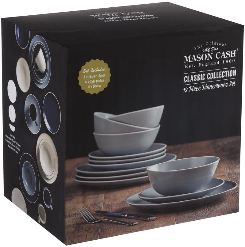 Product Description The neutral colours of the Mason Cash Classic Collection dinnerware will suit any kitchen and co-ordinate with some of our best-selling collections including Cane, Varsity and Baker Lane. The grey 12 Piece Dinnerware set is made from fine, durable stoneware Set Contains: Classic Collection 12 Piece Fine Stoneware Grey Dinner Set