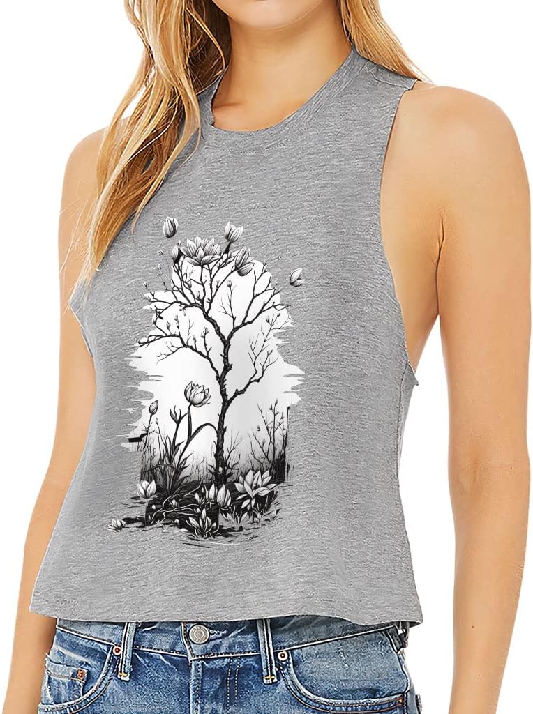 Cute and flattering Nature Print Racerback Cropped Tank is suitable for most indoor or outdoor activities, such as gym, yoga, running, hiking, beach or relaxing around the house. Pair Flower Women's Tank with your favorite sports bras, especially strappy ones, and high-waisted leggings, then you will enjoy cool and comfortable exercise throughout the summer.