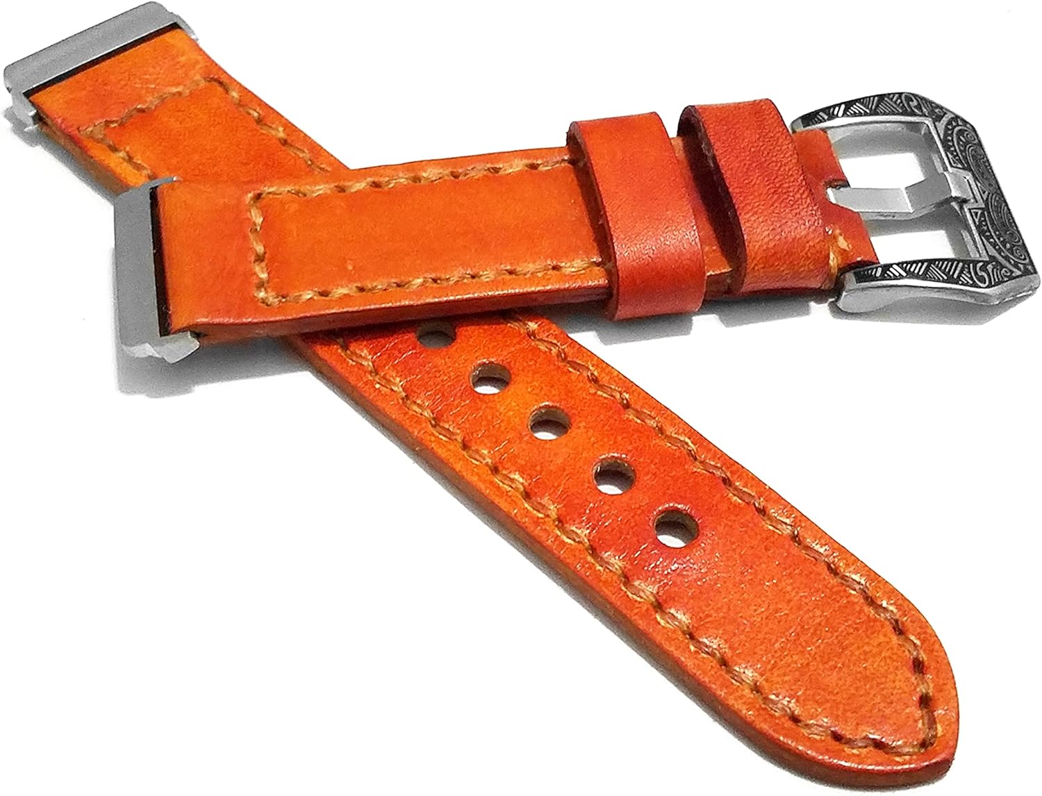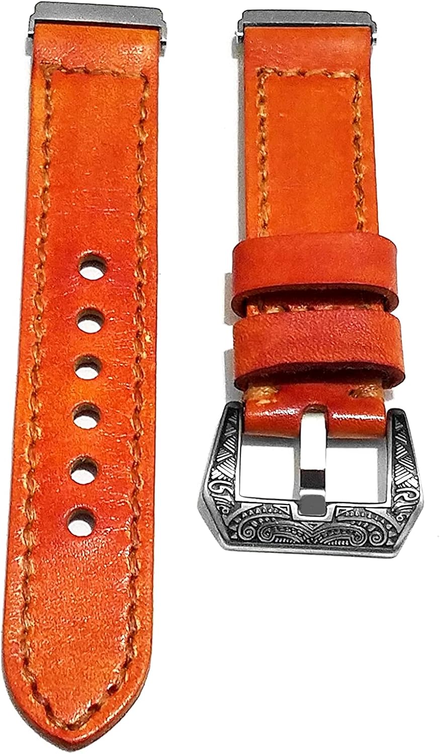 Product Description:<><> Premium Quality Genuine Leather and Precisely Crafted. In the making of this product, a special crafting technique was used for cutting, sizing, painting and stitching - The design and colors are chosen to provide you with comfort, self esteem and class. For the painting of this premium leather, natural coloring was used from fruits and vegetables with a characteristic warm tone, which creates peace for you or the people around you. We believe and are sure that everything created with love, will and patience is a positive energy source. Which charges and recharges us constantly with good positive energy.<><> Cleaning: Because this band is made from natural materials, it will mold to your wrist and develop an aged patina finish over time. The leather band is not sweat or water-resistant. We recommend limited to no contact with moisture to reduce discoloration-damage to the band. If the band gets wet or dirty we recommend using a non-abrasive, lint-free cloth. If needed, you can lightly dampen the cloth with water and let the band air dry. Leather can dry out, especially when exposed to water. We recommend a monthly application of a leather conditioner to keep your leather protected and moisturized. Cleaning can be done with a slightly moistened cloth. Enjoy fresh new looks with your accessories and let time go by in style!