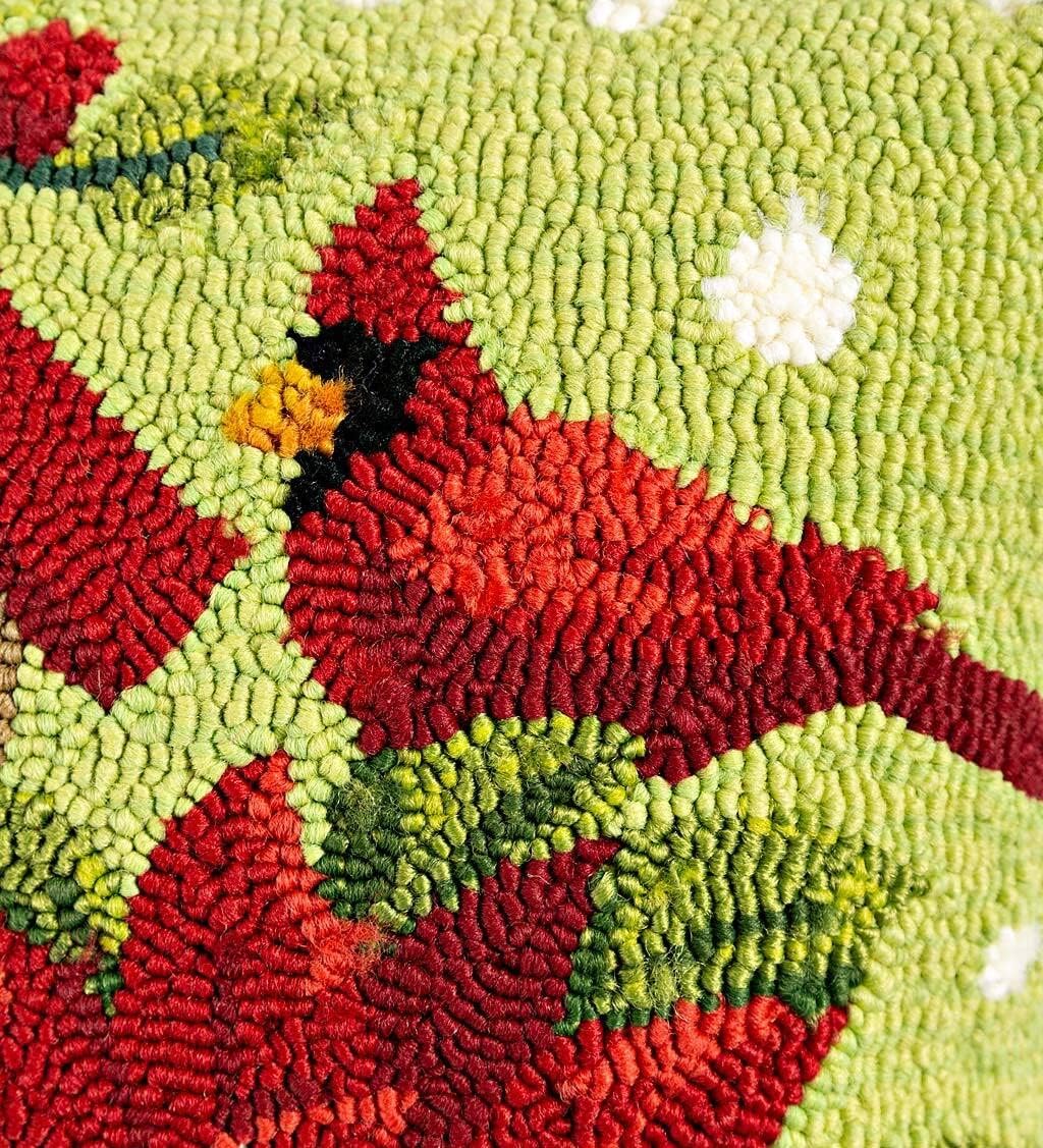 Add a festive touch to your home with this 18"x18" Poinsettia/Cardinal Hooked Polypropylene Throw Pillow. Perfect for both indoor and outdoor spaces, this pillow showcases a vibrant design featuring a cardinal perched amidst poinsettias and a charming birdhouse. Made from durable polypropylene, it withstands the elements while maintaining its colorful appeal. The hooked texture provides a soft, cozy feel, making it an inviting addition to any seating area. Ideal for holiday décor, this pillow enhances your space with warmth and seasonal charm.