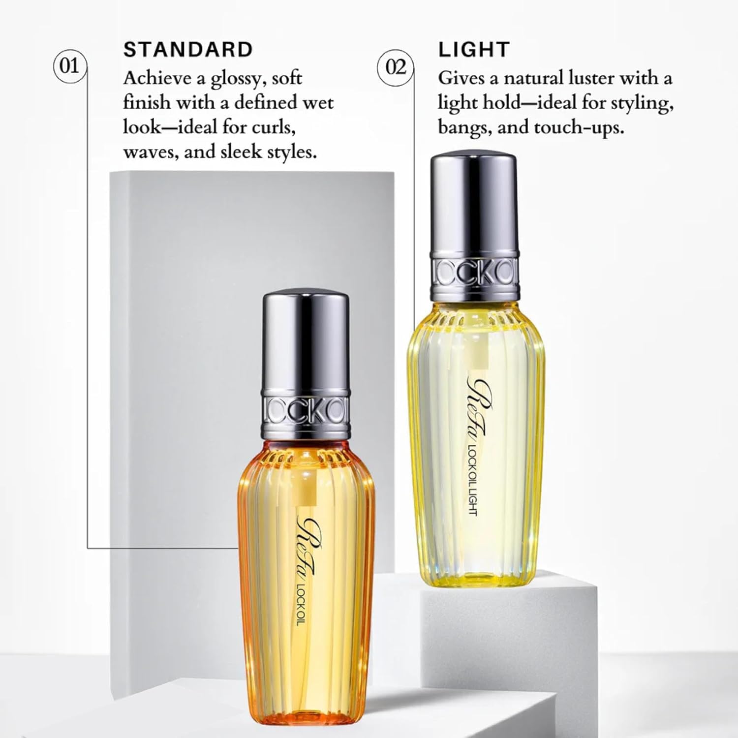 ReFa Lock Oil Light is a lightweight Japanese hair styling oil designed to deliver smooth, radiant styles with effortless control. Infused with 18 botanical oils—including argan, camellia, and evening primrose—it hydrates and protects hair while maintaining a soft, natural finish. Ideal for fine to medium hair, this fast-absorbing formula shields strands from heat damage up to 180°C, reduces frizz, and enhances shine without leaving residue or heaviness. Whether you're styling bangs, loose curls, or sleek waves, ReFa Lock Oil Light offers flexible hold and a clean, refreshing scent that elevates your daily routine.