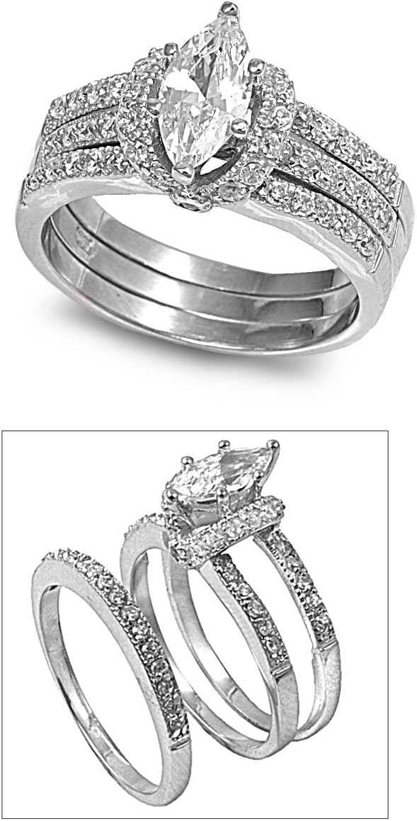 Set of 3 Marquise Center Engagement/ Wedding Cubic Zirconia Ring Sterling Silver 925