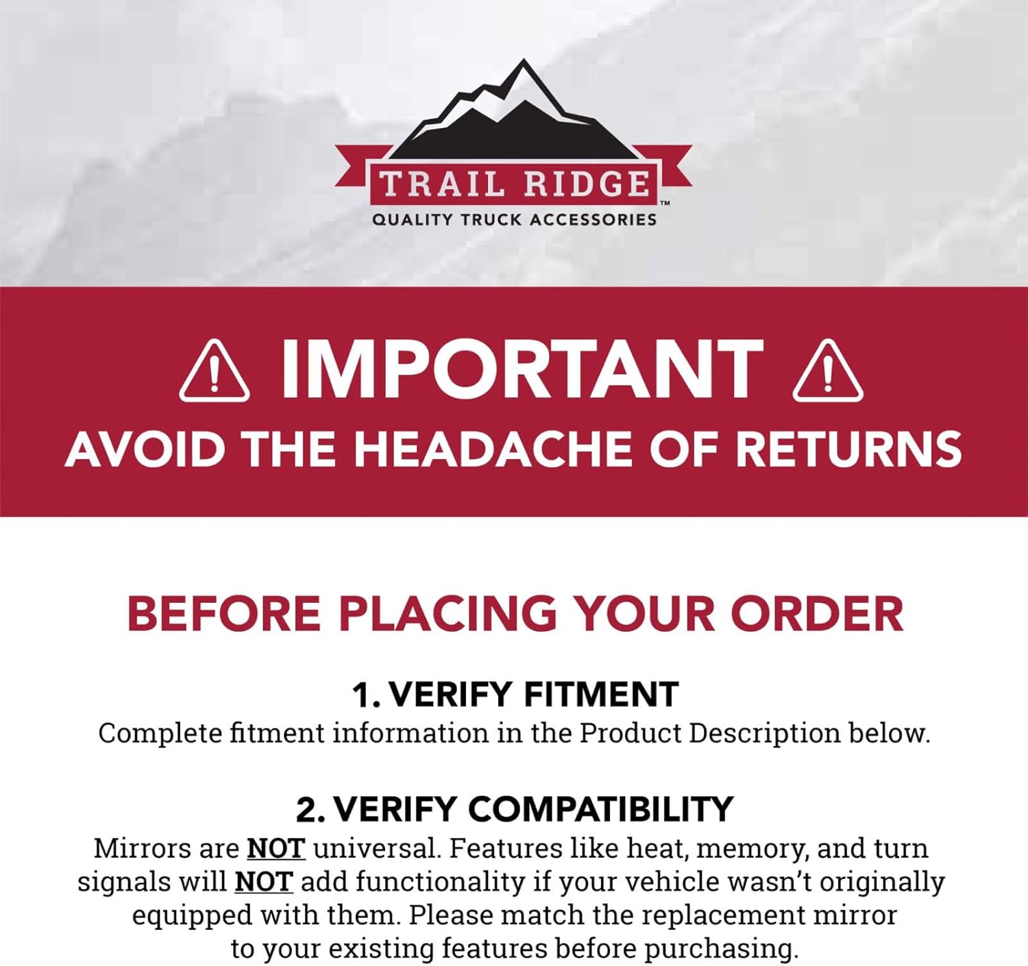 | Included Components | 1 Driver Side Mirror, 1 Passenger Side Mirror |